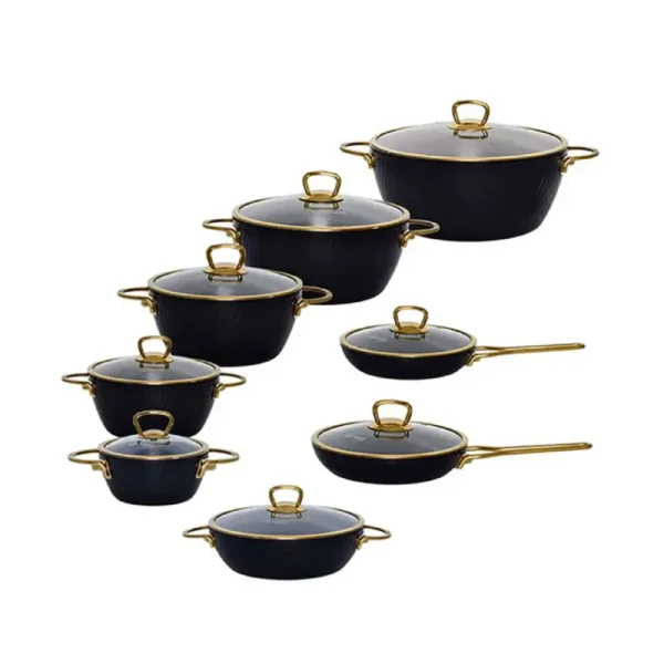 مدل ماینز، نمایندهای جذاب از ترکیب هنر و کارایی در آشپزخانه شما است. این قابلمهها با بدنهای مستحکم از چدن، به شما این امکان را میدهند که با خیال راحت به تهیه غذاهای مورد علاقهتان بپردازید. اگر نگاهی به طراحی این محصول بیندازید، متوجه میشوید که رنگ یراق و دستههای طلایی آن، زیبایی بصری خاصی به این سرویس میبخشد. درب پیرکس این قابلمهها که دارای سوپاپ است، این اطمینان را به شما میدهد که در حین پخت و پز، بخار به خوبی کنترل میشود و عطر و طعم غذا به بهترین شکل حفظ میگردد. همچنین، روکش گرانیتی و نچسب این قابلمهها به شما اجازه میدهد تا با استفاده کم از روغن، غذاهای سالمتری آماده کنید.